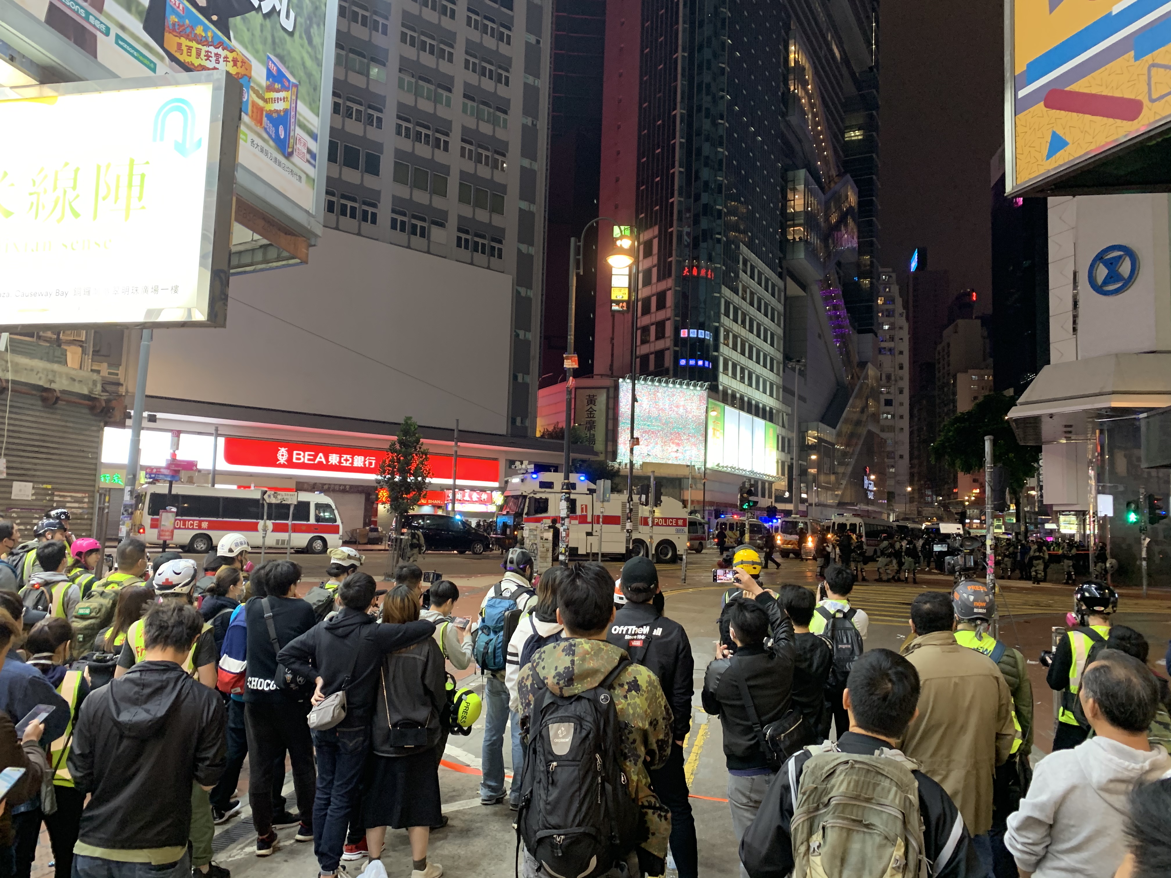 游行队头下午约4时到达终点中环遮打道,当时仍有大批市民在维园等候出发。游行期间,湾仔轩尼诗道与卢押道交界滙丰银行分行对开,有黑衣人聚集,期间出现溷乱,有人被警方制服及拖行,防暴警察施放催泪弹及胡椒喷剂,有人掷杂物,并投掷汽油弹。