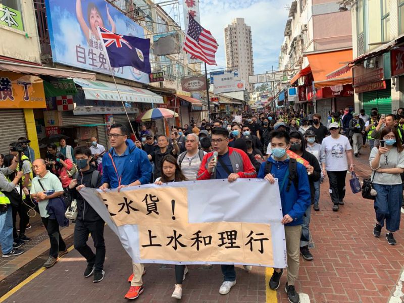 集会于今日1时半在上水一号花园举行,游行2时半出发,由上水一号花园起步,途经新成路及新康街,终点为上水港铁站附近的赛马会投注站。游行路线邻近上水广场,广场多个出入口均有防暴警员戒备,部份警员手持防暴枪、圆盾等武器。