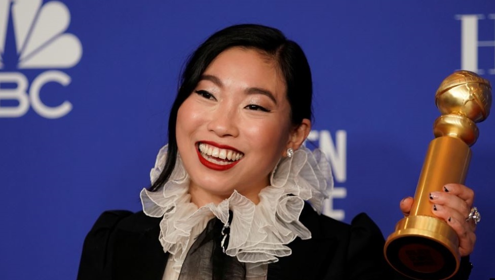 美国亚裔女演员林家珍(奥卡菲娜Awkwafina) 因出演“别告诉她”(The Farewell)赢得金球奖最佳女主角奖。(2020年1月5日)