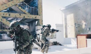 这次是海军陆战队特勤队执行综合格斗、应用射击和特种作战演练。演练模拟某雷达站被敌特工人员占领,特勤队赶往驰援,制服敌军并解救人质。另外,台湾国军飞弹快艇对入侵敌船实施雄风二号飞弹射击。