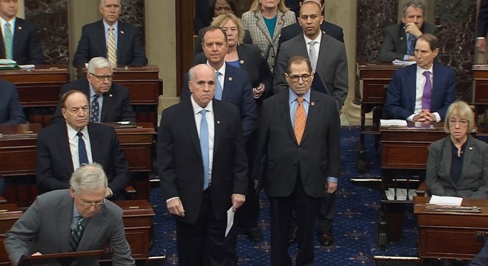 希夫在参议院宣读了12月18日众议院通过的两项指控。参议院将从下周二(1月21日)起正式开始审理。