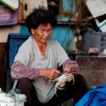 远离抗议浪潮 Leung Wong-hing用稻草捆绑着她和丈夫在深圳湾抓到的螃蟹。她的儿子和孙女今天将回家看望她们。他们的村子虽然位于香港,但是却远离催泪弹、警棍和示威者与警察之间的暴力。