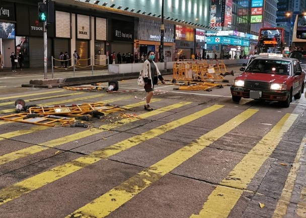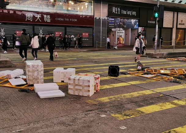 (中華時報訊)武漢肺炎肆虐,香港政府拒絕全線封關,有網民(4日)發起「五區開花」活動,晚8時開始,有示威者在旺角彌敦道近山東街一帶聚集,開始時因人數不多,警察未見出現。及後,示威者逐漸增多,防暴乘警車到場監視。至晚上10時許,示威者突然將發泡膠箱、膠欄杆等掟出彌敦道阻塞交通。防暴警隨即採取行動驅散,截查多人,並將堵路雜物搬埋路邊,令道路恢復暢通,同時一直留在現場監視情況。