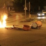 另外,將軍澳尚德邨對開的唐明街亦有示威者快閃堵路,將小巴站牌、紙皮、圍欄及雪糕筒等雜物放在馬路,設置路障,然後迅速散去,防暴警其後到場清走雜物。不過,示威者其後再於唐明街設置路障,更縱火焚燒膠欄杆,防暴警將火撲滅兼檢走堵路雜物。