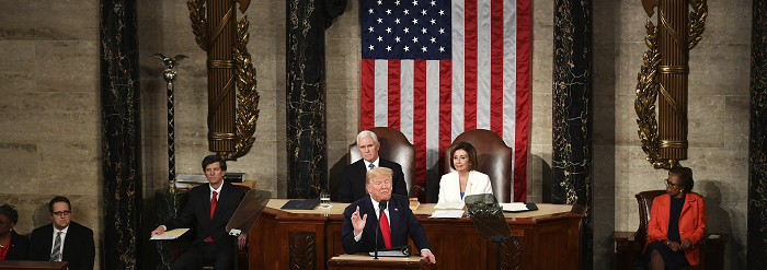 特朗普正面临滥用职权与妨碍国会调查弹劾,这项弹劾案预计当地时间5日会有最后结果。面对主导弹劾案的佩洛西(Nancy Pelosi),特朗普入场递交演说内容给她时,技术性闪过佩洛西的握手,也让今天的国情咨文演说(State of the Union address)从一开始就烟硝味十足。