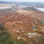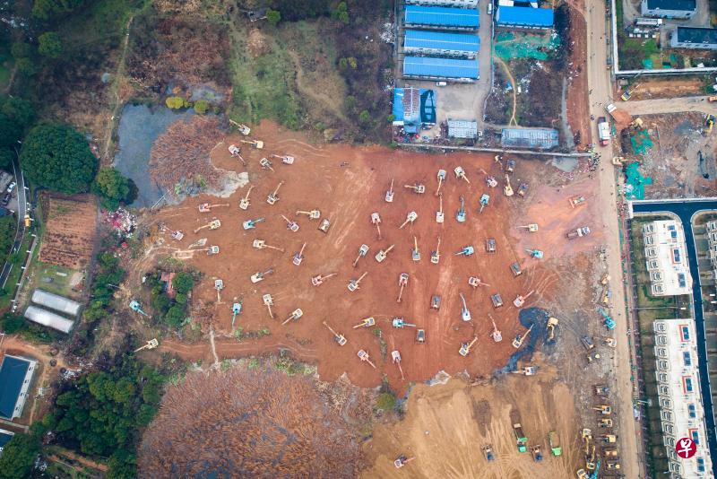 武汉版“小汤山”今早(24日)已开建。在武汉蔡甸知音湖武汉职工疗养院的现场,据报有上百台机械同时开挖。