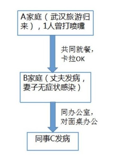 女子1月11日和丈夫以及2个女儿前往朋友家作客,2家人外出用餐,後来还去卡拉OK,开心欢唱到晚上11点,不料女子友人夫妻档被感染、接连发病,但他们当时也不以为然,还趁着新年假期到亲戚家拜年,结果亲戚家7个人,从大人到孩子全都被感染,目前已有5个人发病,而过年後,女子友人因照常上班,还造成办公室坐在对面的一名同事遭到感染。因此总计这起事件中,一共造成了11人染上武汉肺炎。