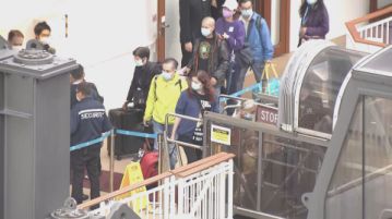 船上過千名旅客滯留五日後,傍晚分批落船,大部分人戴上口罩、拖著行李,船員在甲板上歡送他們。