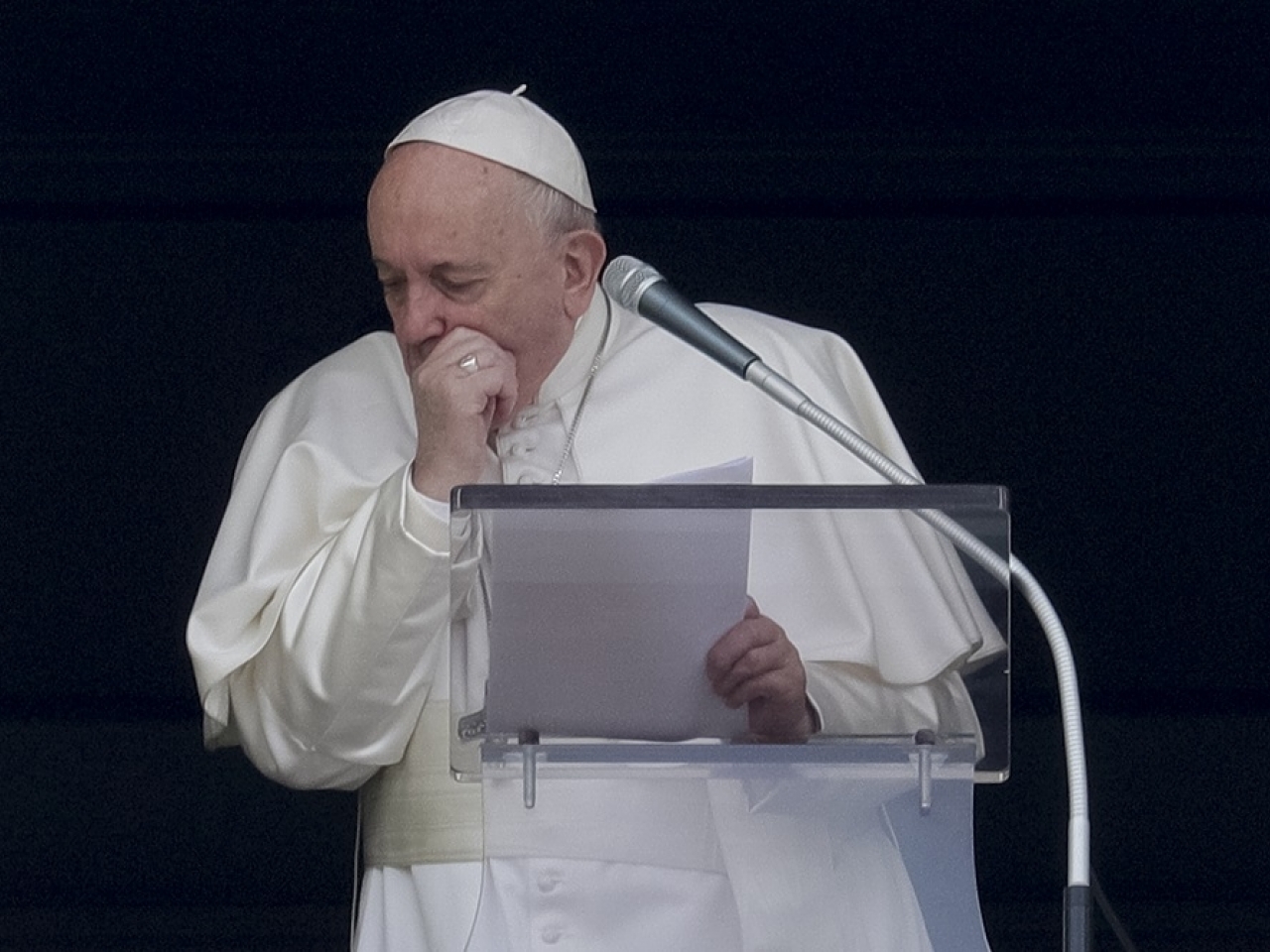 《法新社》报道,教宗讲话期间出现数次咳嗽。