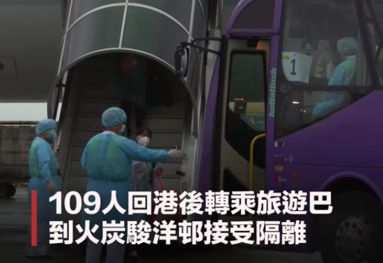 首班机有109名港人,该批港人经过体温检测后由政府专车送去火炭骏洋邨接受14日检疫。