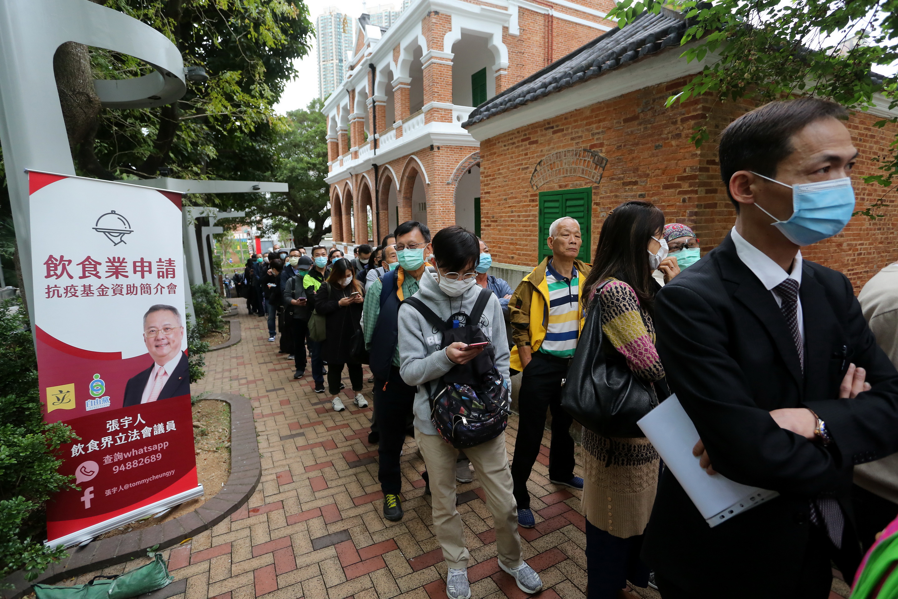 中華時報香港訊(香港 2020年3月5日):近月肺炎疫情導致飲食商戶生意大受影響,業界對政府推出之「防疫抗疫基金」食物業界別資助計劃麵首以待。有關資助計劃於今天(3月5日)開始接受申請,飲食界立法會議員張字人隨即於同日主辦之「飲食業申請抗疫基金資助簡介會」於今天假尖沙咀舉行,獲業界廣泛支持,約有逾千位業界人士參與。並即場為合資格並營運中的食肆即場辦理基金申請,以助食物業界盡快獲得抗疫基金資助,渡過疫境。