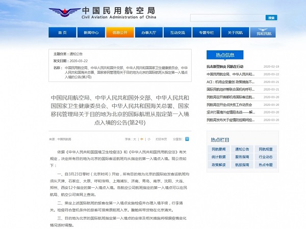 北京明日起实施新的航空交通检疫安排,所有目的地为北京的国际客运航班,要先前往全国12个指定「第一入境点」入境。