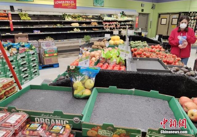 当地时间3月17日,美国旧金山湾区圣马特奥县一家超市的多种商品供不应求。 中新社记者 刘关关 摄