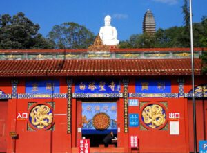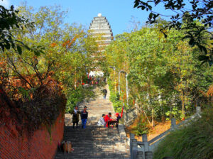 就像北京的白塔寺在周边都能见到其白塔壮观的雄姿一样,未进庙宇之前已经能从附近远眺到寺后北塔山上的那座壮观的宋代古塔。白塔寺寺院由天王殿、地藏殿、伽蓝殿、大佛殿、观音大悲殿、大威德金刚殿和五楼、五亭、五院、一塔组成。高28米的露天缅玉佛像和一千六百四十尊佛像巧夺天工,堪称一绝。