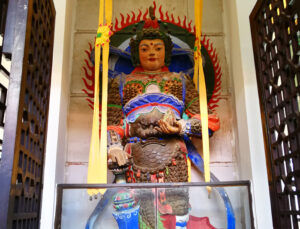 开怀大笑的弥勒佛,使你倍感亲切;威武的韦驮菩萨会让你肃然起敬;逼真的四大天王,高有丈余,有的持琵琶,有的提宝中江白塔剑,有的擒地龙,有的抓银鼠,一个个都脚踏妖魔鬼怪。此处佛像,无论比例、造型、无论色彩、神态,可谓巧夺天工,无可挑剔,你看后定会赞不绝口。