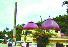 漫步白塔山寺院内,人们能看到庙宇中好似一座花园。在所有建筑的正、侧面及道路两旁,都有花坛、高大的樟树和雪松。所有花坛内,不仅有围边万年青和“馒头九年青”,还有各种作为点缀的花草。什么紫荆、月月桂、玫瑰、美人蕉、六月菊、一串花、一箭梅、指甲花、蓬仙花、金蝴蝶、马蹄花、四季红等不下四十余种。