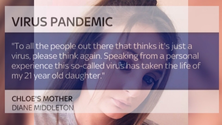 英国天空新闻台:想向那些,不保持社交距离的大众,传递一个讯息,它们需要记住这很严重,老年人可能容易被传染病毒,而克罗伊的死,特别引起卫生部官员注意。