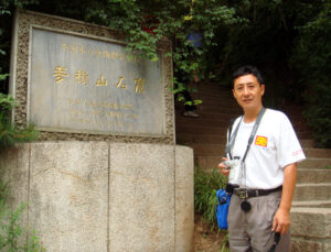 2004年7月27日,记者随走进西部旅游团在甘肃天水采风的第一个景点就是麦积山石窟。当旅游车队向麦积山进发的途中突然下起了蒙蒙细雨。原以为距天水市东南方50公里的近两个小时的行程雨会变小,谁曾想到达麦积山时雨反而越下越大。在快到麦积山附近时,导游指着坐落在群山环抱中的一座类似麦垛形状的小山说,那就是麦积山。虽然麦积山的山体不大,但由于在山体上有著名的石窟而名扬中外。