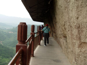 进入景区后,人们顺着婉转曲折步步登高的栈道层层向上攀登,可以仔细观看悬崖峭壁上栩栩如生的石窟雕像。虽然较为陡峭的栈道据说有80层楼高,但游人缓步登上每个平台时都要倾听导游绘声绘色的介绍,所以爬爬停停倒也不觉得特别辛苦劳累。