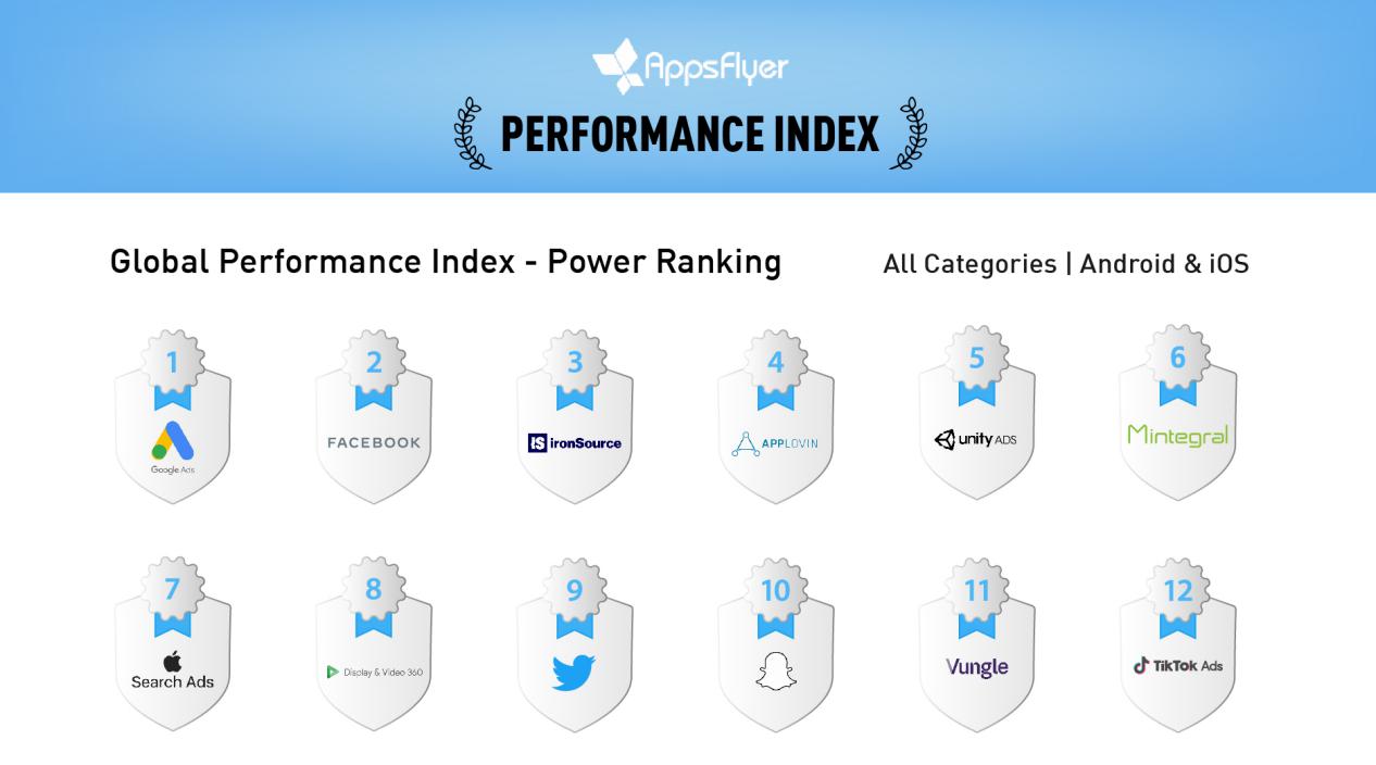 Mintegral在AppsFlyer最新《广告平台综合表现报告》全球综合实力榜中排名第六
