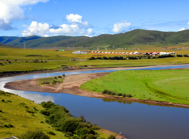 阿坝红原的月亮湾旅游区拥有迷人的草原风光,绚丽的藏乡风情,红原草原的美在月亮湾发挥得淋漓尽致,可以说是红原旅游的骄傲。加之旅游区紧临县城邛溪镇,具有极佳的交通区位优势,因此开发潜力巨大。在一片开阔的草地上,白河呈“S”形蜿蜒流过,如同天上的一弯新月,故而得名“月亮湾”。