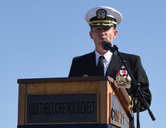 美国国防部今天将遭新冠肺炎冲击的航舰「罗斯福号」(USS Theodore Roosevelt)舰长克罗泽上校(Capt. Brett Crozier)解职,说他对如何传达这艘航舰爆发疫情的处理不当。