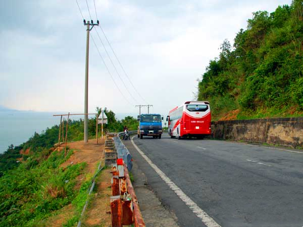 严丽霞介绍说,在海云关隧道没有建好前,从顺化去岘港或者回返,所有走1号公路的车子都得爬海云岭,过海云关,这是连接南北的唯一陆路。这里,终年云雾缭绕,风景秀丽,有时只隔几步就看不见人。道路迂回曲折,弯多而急,一边是茂密的芦苇,一边是海浪怒吼的深渊,意思是天下最雄伟的关隘。从2005年,东南亚最长的公路隧道——穿过海云岭的海云隧道投入运营后,很少人过海云岭了。这条荒废的山岭路,则成为了冒险族的理想旅游点。除了在山岭上就能鸟瞰湛蓝的海水,沿路还能见到就在海边缓慢前行的火车。近年来,许多游客尤其是外国游客每到顺化、岘港都想参与这条饶有兴味的旅游线。