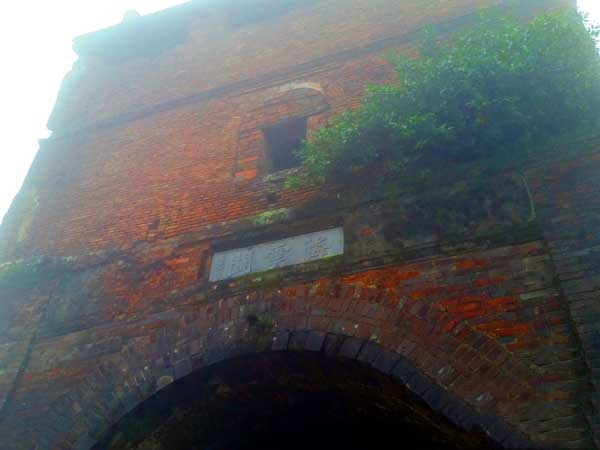 大巴车重新开始启动后径直开到了海云峰。海云峰平均海拔496米,弯弯曲曲长连20公里。是越南顺化省与岘港市之间的天然境界。海云峰风景雄伟,充满诗意。在峰岭眺望大海,四季云涌重山故称为“海云峰”。然而,当车子来到海云峰时,天空中飘起了毛毛细雨,并且突然雾气重重,能见度极低。但是为了观赏这个著名的景点,团友们只得冒雨登高来到雾色中的海云关城楼脚下。在雾色苍茫中,人们来到近前,还是能隐约地看到海云关关门的墙壁,均用山石和红砖砌成十分坚固,石城拱门北面正上方,镌刻着“海云关”三个繁体汉字的汉白玉牌匾,南面的牌匾则刻有“天下第一雄关”六个汉字。
