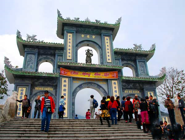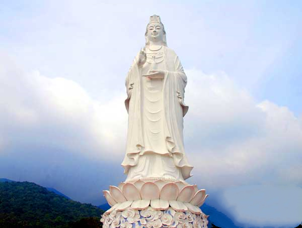 山茶半岛上山峦叠嶂,除了著名的海云关景观之外,还有一尊面向大海而立的巨大的观音像。据说山腰上佛滩灵应寺的这尊像,是全越南最高的观音像。在这里不管从哪个角度眺望,都能居高临下地看到大海,而从半山上俯瞰海湾更是令人心旷神怡。