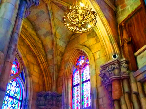 当团友们乘缆车再转乘小火车首先来到巴拿山第一个平台景区时,迷雾开始蔓延并逐渐延伸扩展,所以山上的古堡、花园、90多年前建成的酒窖、灵应寺等景观都在雾色中时隐时现。大家只好插空在团团雾气行将消逝的瞬间,抓紧按下相机与手机的快门。