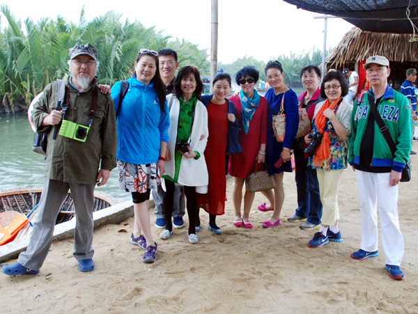 结束了山茶半岛的观光,午饭后,团友们来到如今已被联合国列为《世界文化遗产名录》的会安古城。会安古城位于越南中部岘港市郊秋盆河北岸,会安江入海口的附近,距岘港市区约30公里,曾是历史上著名的东方大港,属广南省管辖。在占婆王国时期,会安曾是一座港口,发展到16世纪,这里演变成一个东南亚最重要的贸易交流中心。18世纪,由于越南国王们长期而激烈的权力之争,约束了发展,会安几乎废弃了,到了最后,这座天然的港口终于淤塞。