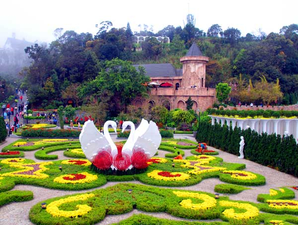 在巴拿山上的城堡具有浓厚的法式高卢风格,周围有一大片望不到尽头的繁茂森林,可以供来此度假的游人享受阴凉。游人漫步行走在巴拿山上,会感觉自己置身于欧洲阿尔卑斯山的一个优美的小镇。山上的教堂、城堡的建筑,基本上以法式的造型呈现,五彩斑斓,就像置身于一个美丽的童话世界。可惜的是岘港的第二个巨大的遗憾接踵而来。