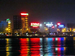 结束了亚洲公园的游览,团友们开始了岘港最后的行程,那就是船游岘港韩江河,观赏两岸美丽的五光十色的夜景风光。岘港韩江是越南著名的江河之一,韩江桥也是岘港的象征,而乘船游赏就是了解韩江沿岸风景的极好方式。