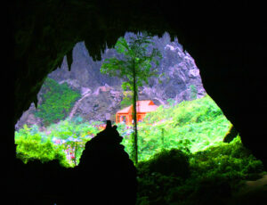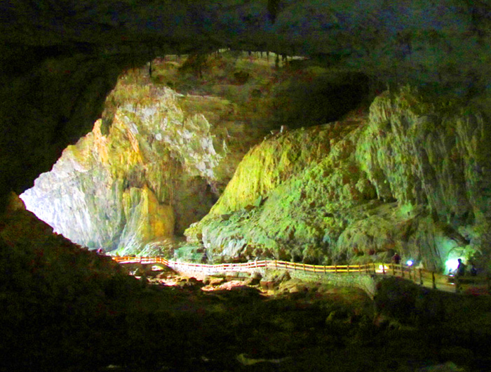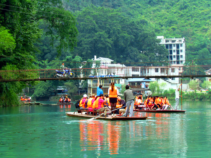 离开长寿水晶宫来到位于巴马甲篆乡烈屯西北面的漠斋山下的百鸟岩,这里也叫龙虎洞。因洞内燕子栖集,蝙蝠掠飞,又名百鸟洞。来这里其实主要是在景区中被称为“水波天窗”的长河里泛舟游览。