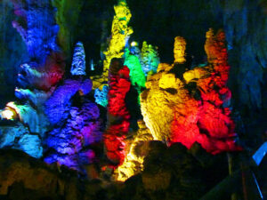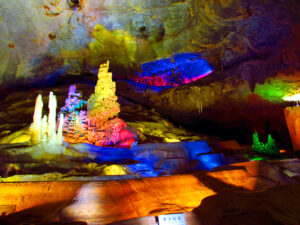 步入水晶宫不仅能观赏到举世罕见的地质奇观,还能融入世界长寿之乡的长寿文化氛围。那些发出水晶般的光泽的钟乳石就像一个个老寿星堆砌着、排列着、舒展着。当游客穿行在由“寿星探秘”、“圣母祝寿”、“寿乡活力”、“寿成正果”、“瑶寨”等景致组合的空间里时,不得不惊叹大自然的造化,不得不称之为“巴马魂”。