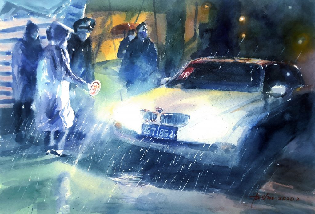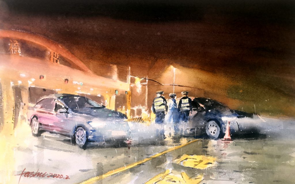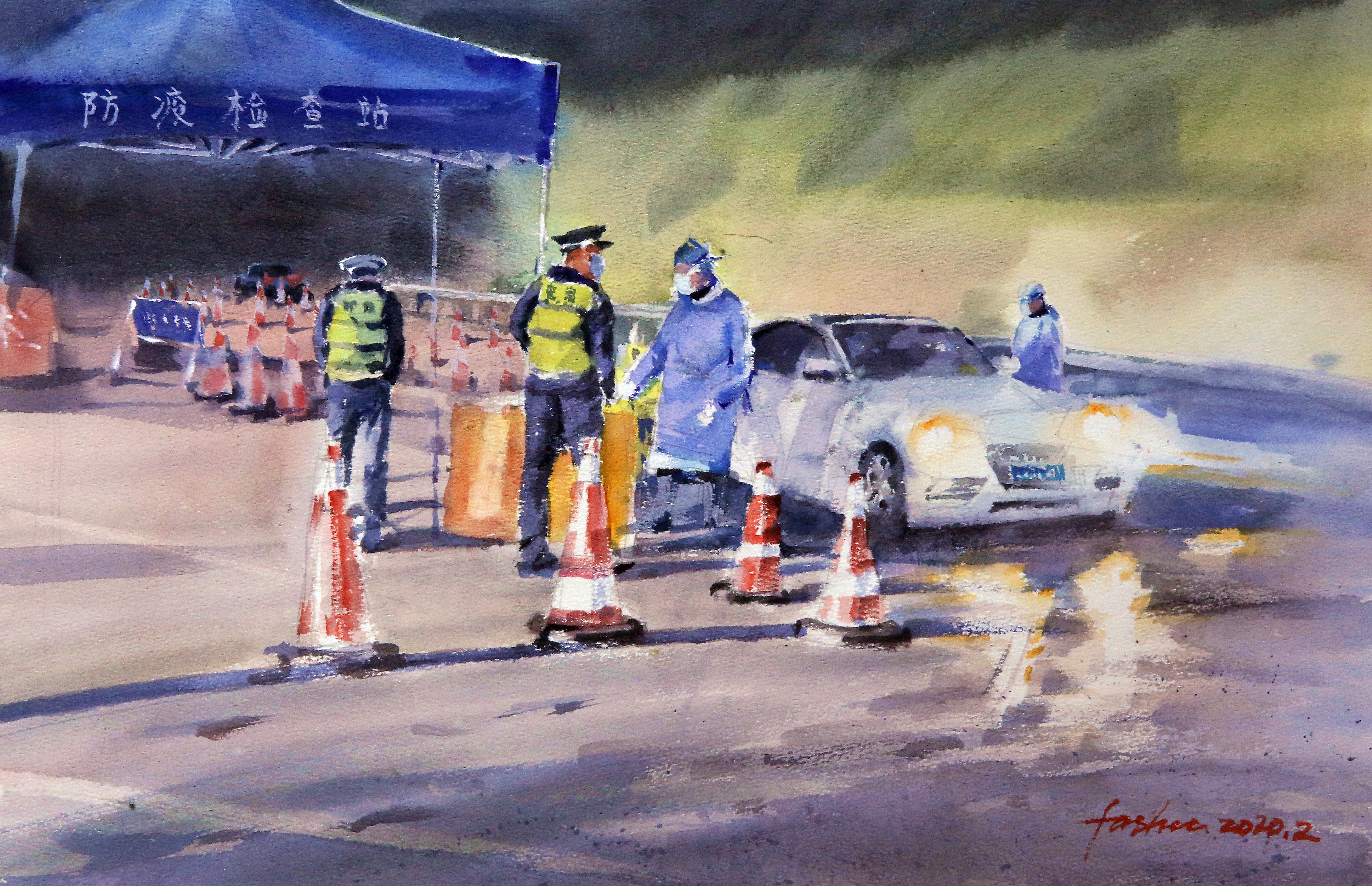 线上抗疫主题国际艺术作品展:谢发树–水彩画《公安抗疫一线组画》