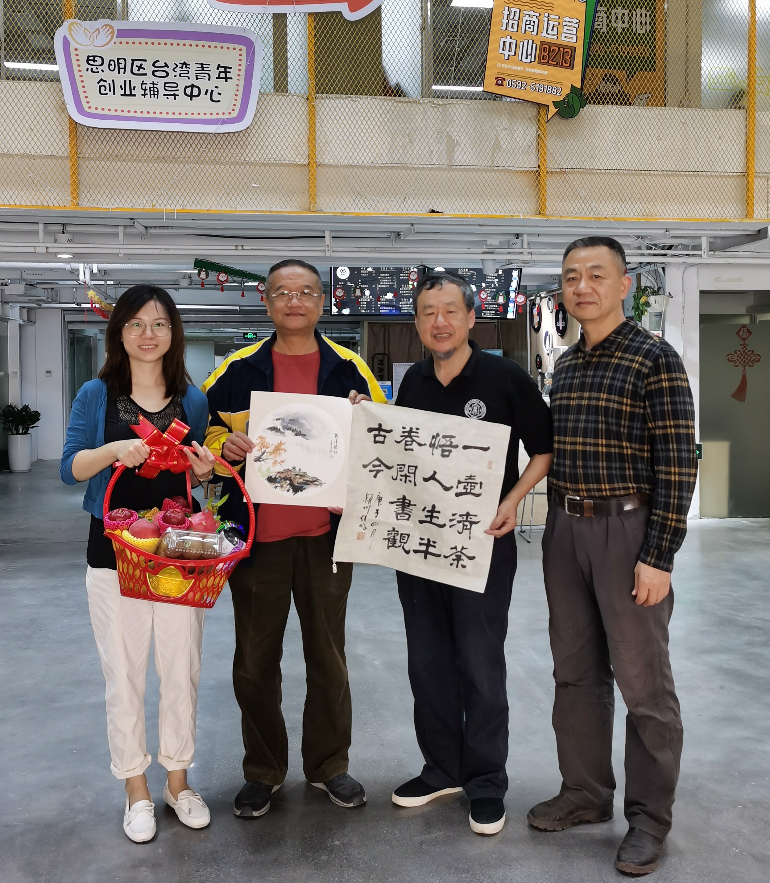 【記者王輝丹/廈門報導】廿八日上午廈門關心下一代工作委員會副主任陳佳鵬、秘書長楊惠凡、工作人員陳穎來到廈門思明區台青創業中心看望因疫情影響受困廈門的台灣畫家,並送上一籃台灣水果以解畫家思鄉之情。陳佳鵬表示將會盡力幫忙協助解決臺胞在廈門生活、工作遇到的各類問題。
