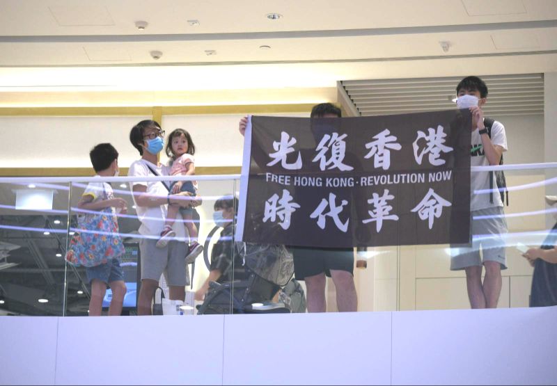 有人在商場內展示「光復香港時代革命」的反修例旗幟,並叫反修例、反警察口號抗議,現場大約有近百人。晚上約7時半,防暴警察進入商場位置要求指違反限制聚集規例,要求人群散去,現場人群不滿叫囂,其後防暴警察退後。晚上8時許,警方一度在商場外舉起黃旗,旁邊一名男子情緒激動,並與在場警員爭論有關聚集的規例。警員其後再次在場廣播,警告在場聚集的人群已違反限聚令,否則可能會被票控,要求人群立即散去。目前,仍有大批警員在商場外布防及戒備。其後,警員驅散仍留在商場外一帶的人。