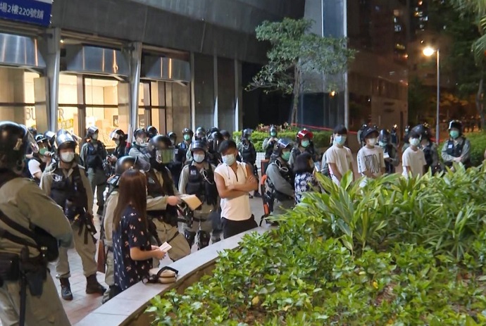 防暴警察較早前在商場附近截查聚集人士,搜查隨身物品,其間又驅散公園內逗留的人士。