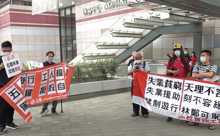时逢五一劳动节假期之际,,过往多个工会都会发起游行,争取劳工权益。但在疫情及限聚令之下,职工盟及工联会都取消游行。其中职工盟改为在多区摆设街站,工联会改以网上直播记者会表达诉求。