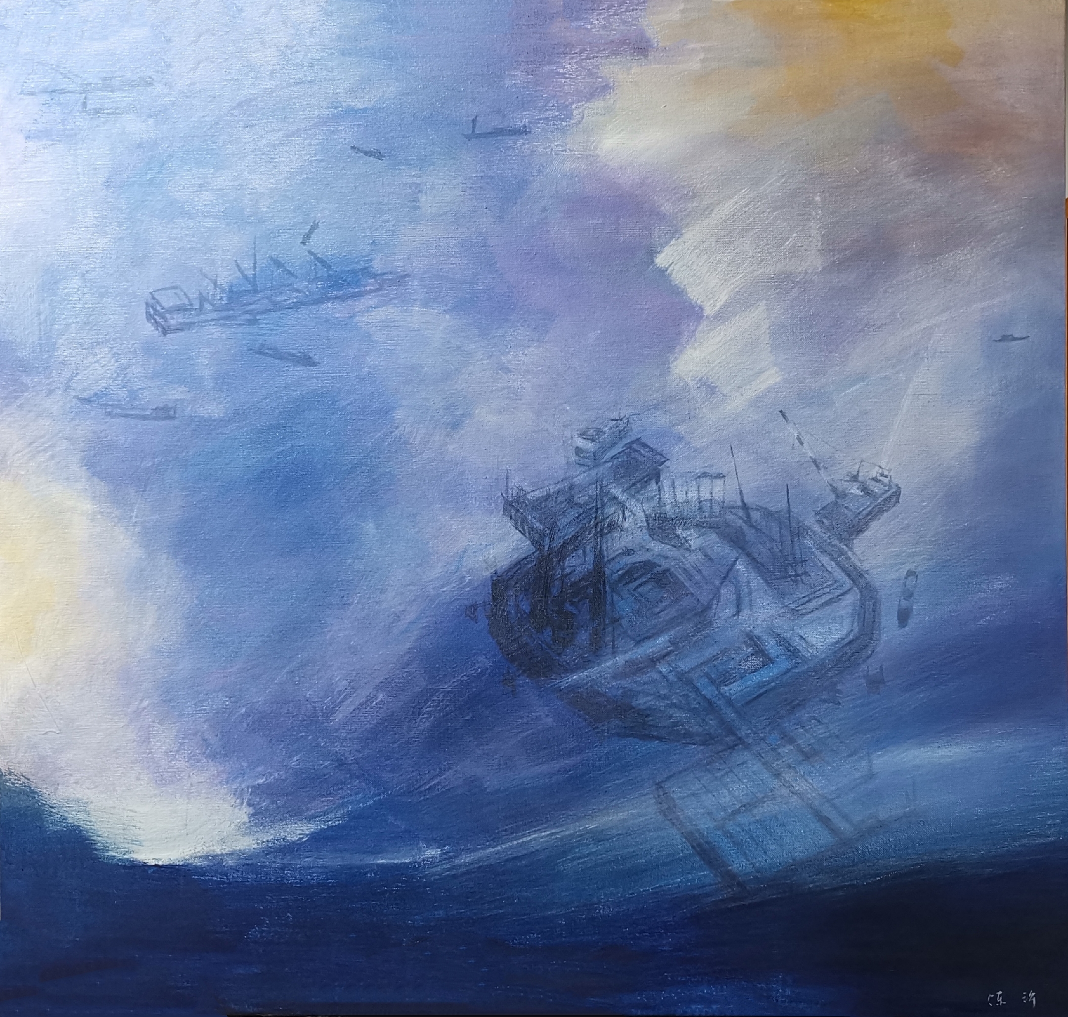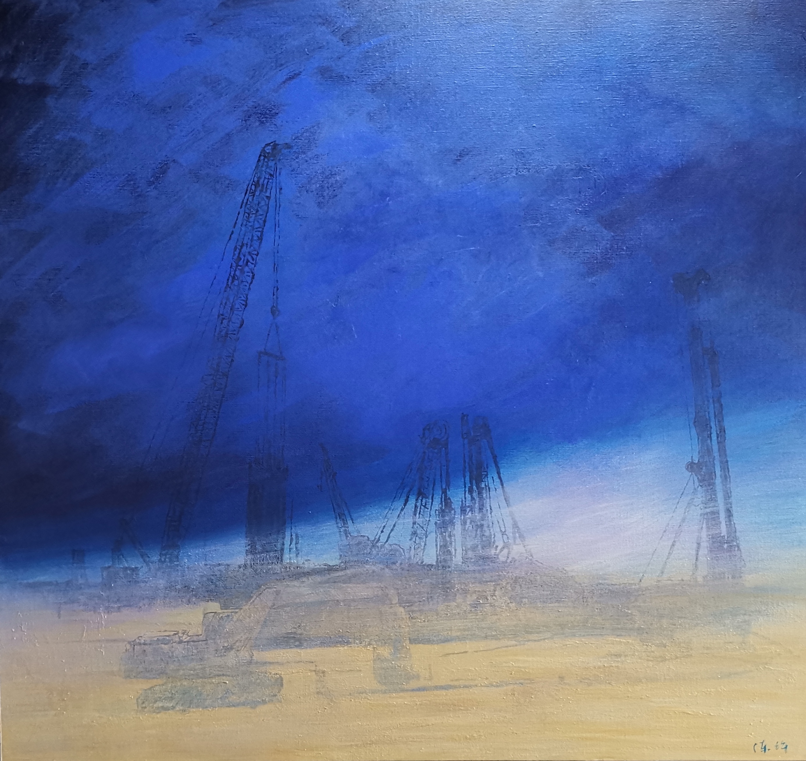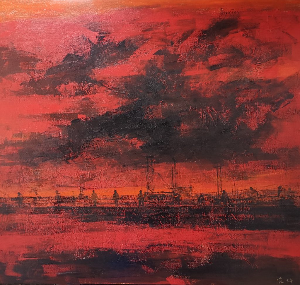 作品题目:大国工匠展雄心—深中通道主题油画系列作品