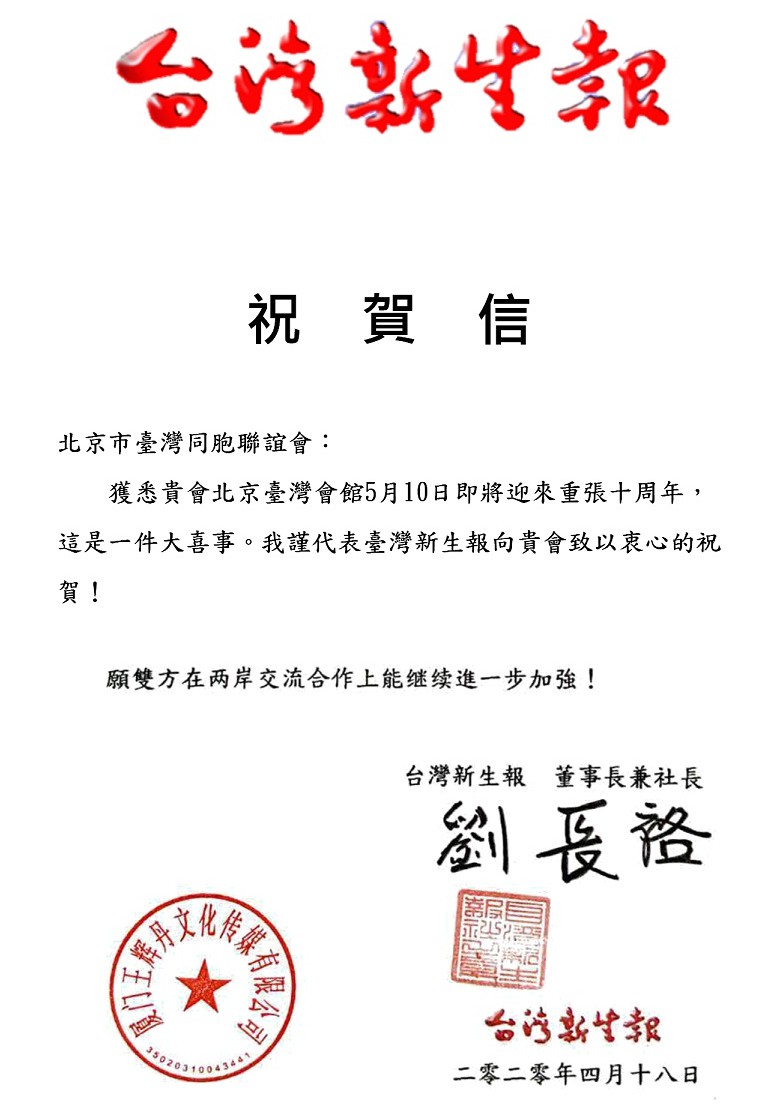 憶往昔,崢嶸歲月稠。新時代,揚帆但信風。此刻台灣新生報願與北京台灣會館同享喜悅,共懷感恩。未來將繼續砥礪前行、不負重托。