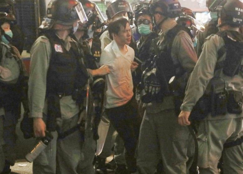 防暴警驅散旺角示威者 民主黨立法會議員鄺俊宇被制服在地上,涉行為不檢被捕