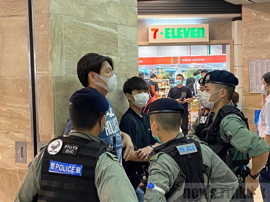 6時許,警方在海港城將一名”深學媒體”的學生記者帶上警車。據”深學媒體”臉書專頁介紹,他們是由8名來自不同中學的香港在校學生,在2020年2月創立。