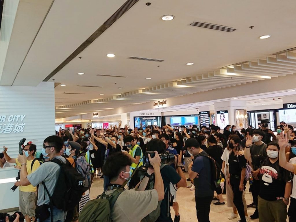在尖沙咀海港城有超過100名港人聚集合唱,不少人高舉手勢,喊“出“五大訴求,缺一不可”的口號,也有人揮動“光復香港,時代革命”的旗幟。另外,太古城中心則有警察指聚集人士違反了“限聚令”,警告將對在場人士發傳票,雙方一度陷入緊張氣氛。