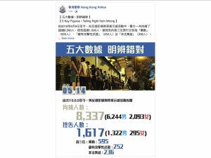 警方在社交專頁表示,自去年6月9日至今,在反逃犯條例草案示威活動中,共拘捕超過8300人,當中超過1600人被檢控,最多人被控暴動罪,有595人;其次是藏有攻擊性武器罪和非法集結,分別有252和236人被檢控。