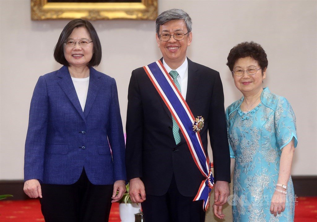 蔡總統再次感謝陳副總統對國家的付出,她說,頒授中山勳章,肯定陳副總統4年任期內承擔起一件又一件充滿挑戰性的任務,包括主持年金改革委員會、推動人權工作、和宗教團體溝通對話及五度代表國家出訪邦交國。