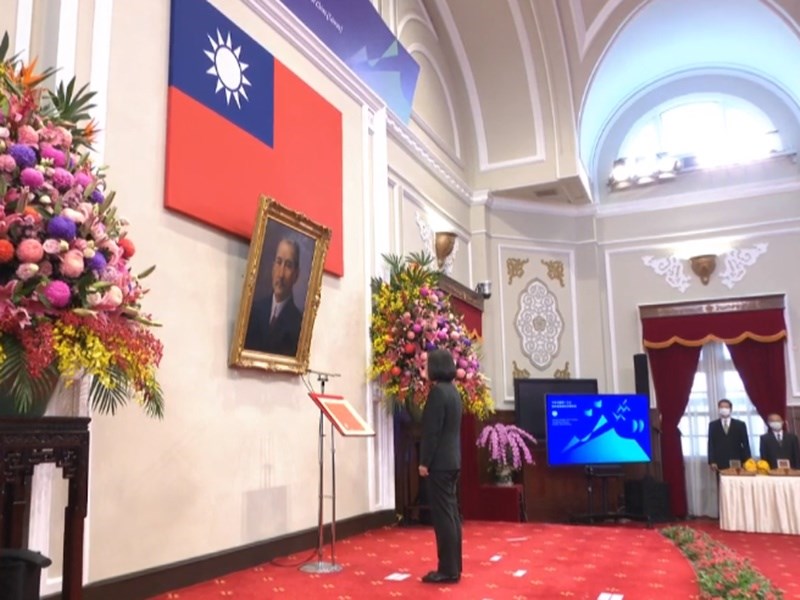 總統蔡英文今日9時在總統府3樓大禮堂進行宣誓就職,先由蔡英文與準副總統賴清德進行宣誓;接著,由行政院院長蘇貞昌帶領總統府秘書長蘇嘉全、國安會秘書長顧立雄進行宣誓,最後歡送前副總統陳建仁伉儷。