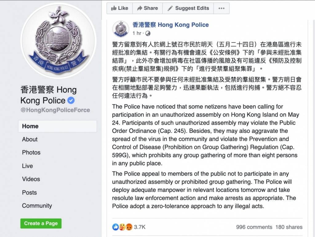 港澳香港 網上號召明日港島集會 警方稱會果斷執法 由 中華時報總編室 - 2020年5月23日 警方在社交網站表示,留意到有人於網上號召市民明天在港島區進行未經批准的集結,指明日會在相關地點部署足夠警力,迅速果斷執法,包括進行拘捕。 警方表示,有關行為有機會違反「參與未經批准集結罪」,亦會增加病毒在社區傳播的風險,及有可能違反《預防及控制疾病(禁止群組聚集)規例》。 警方呼籲市民不要參與任何未經批准集結及受禁的群組聚集,重申絕不容忍任何違法行為。