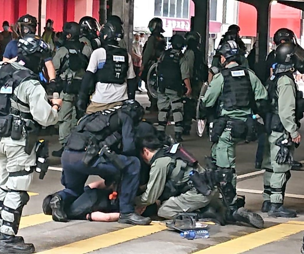 警方說,中午起大批人假借示威為名,在銅鑼灣及灣仔進行違法暴力活動,肆意闖入仍有車輛行駛的馬路設障礙物,又縱火焚燒雜物,多名警員及持不同意見的市民被人用磚頭及雨傘等硬物襲擊,多人受傷須送院治理。